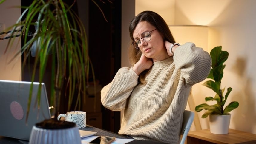 - Má postura no trabalho, no uso do celular ou ao dormir